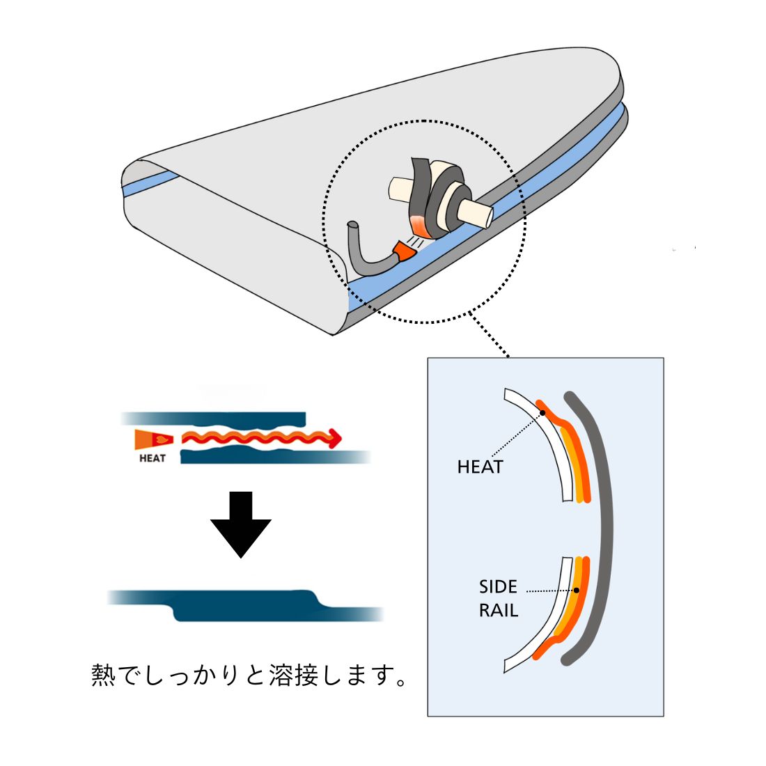 本体の構造部分に熱溶接を使い