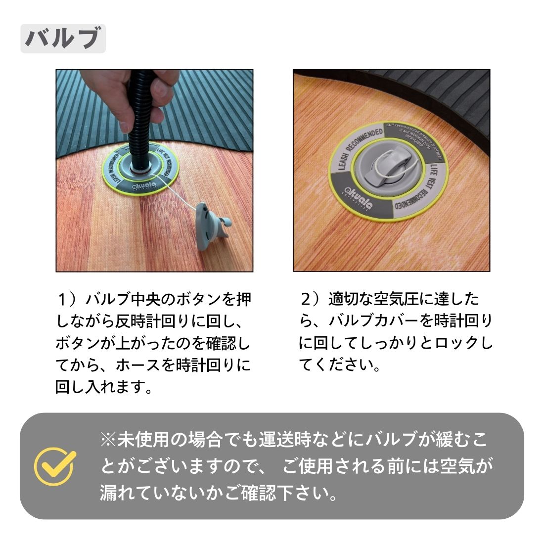 ご使用前に空気が漏れていないかご確認下さい。