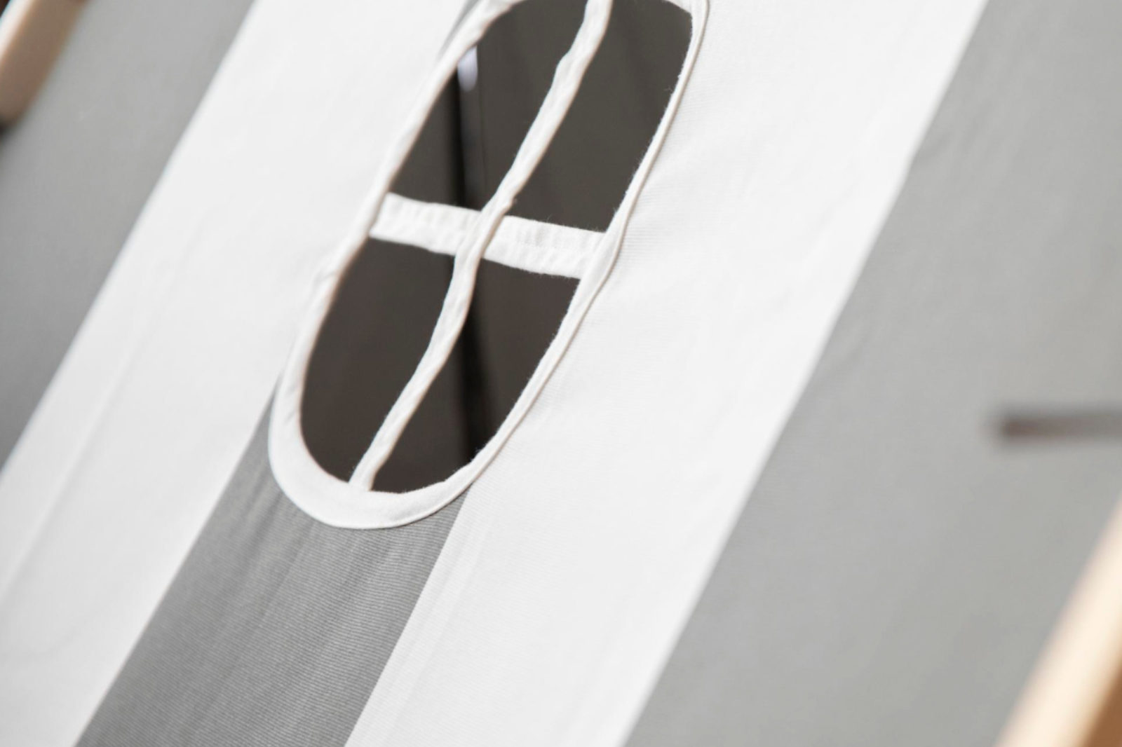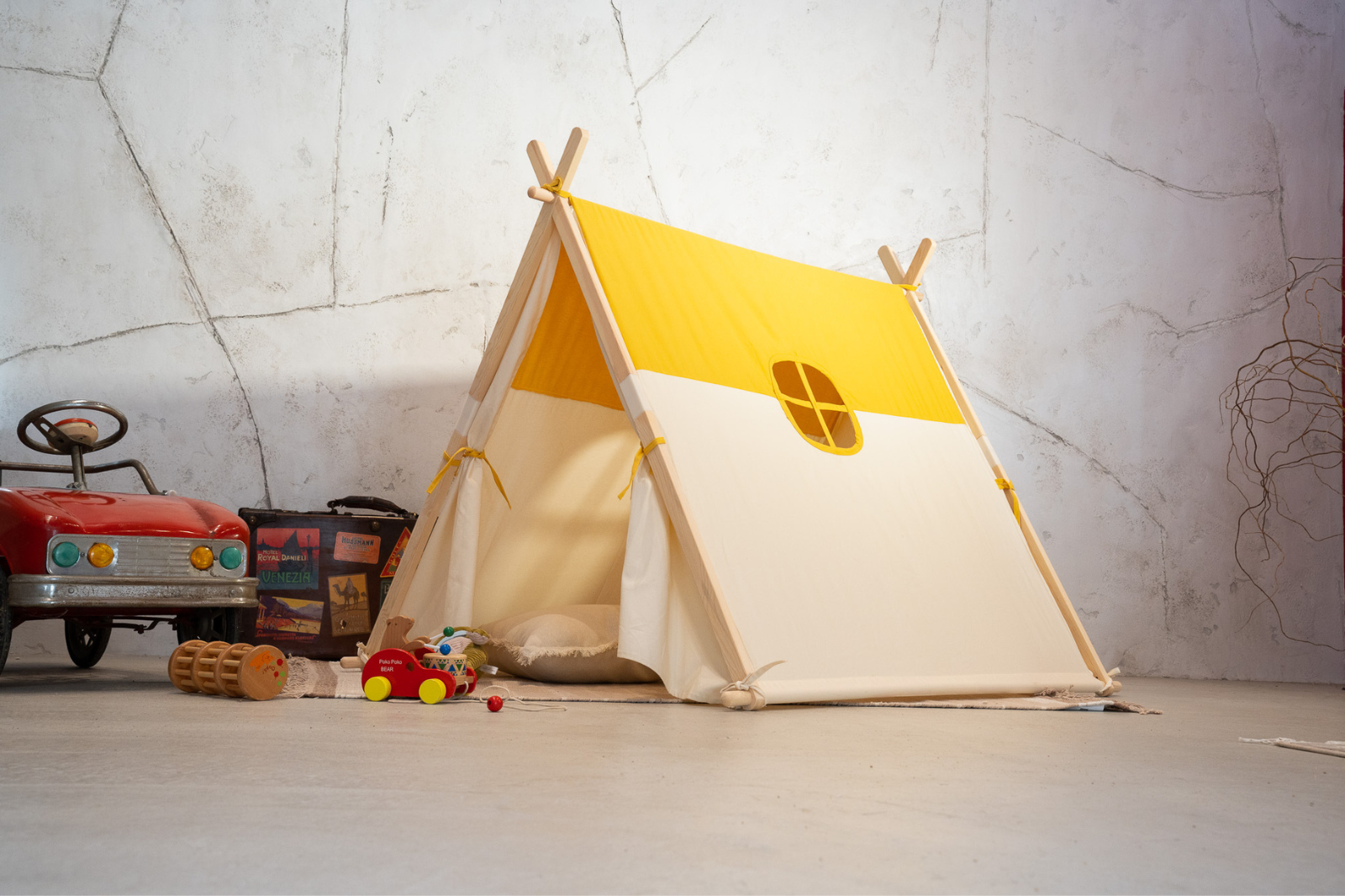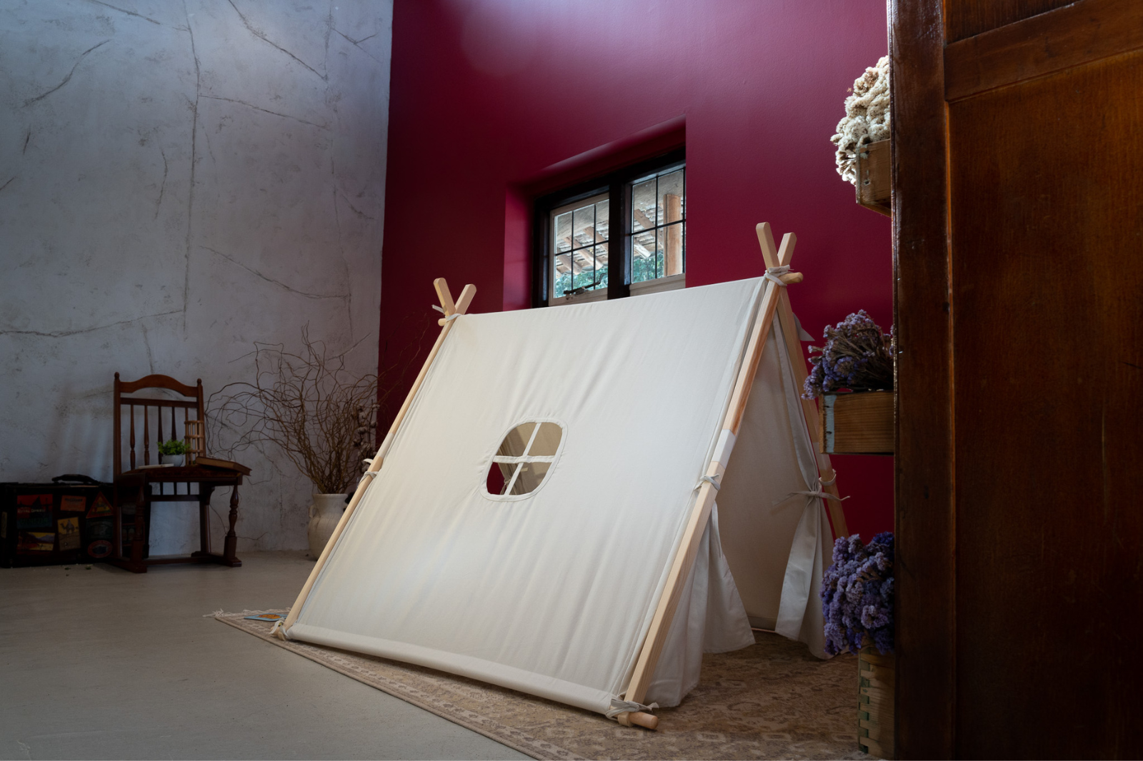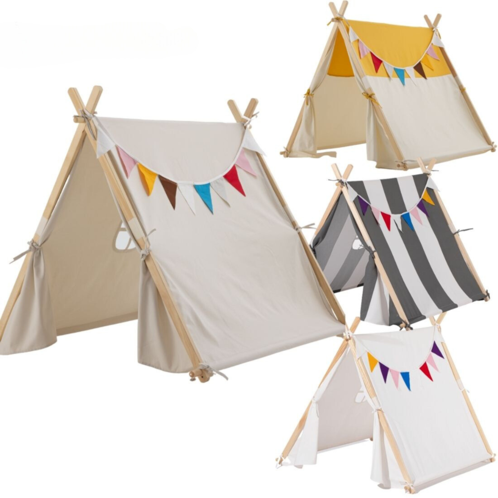 テント生地はコットン100%、ポールは天然木を使用しています。子供が安全に楽しめます。