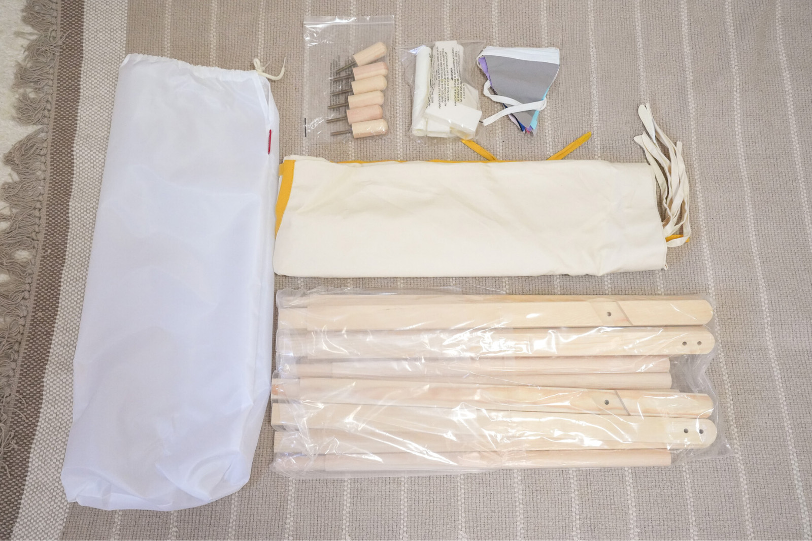 テント生地はコットン100%、ポールは天然木を使用しています。子供が安全に楽しめます。
