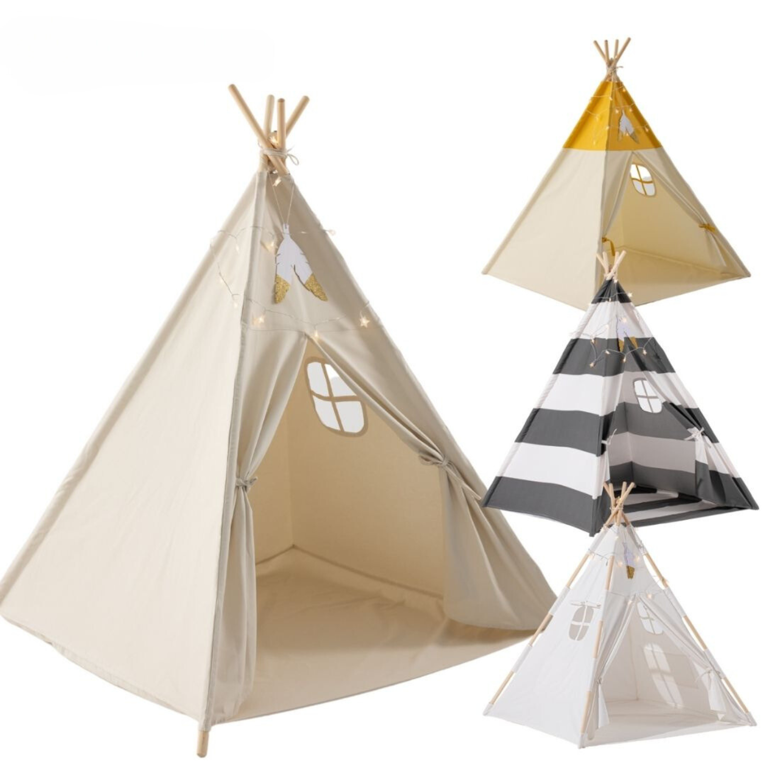 NINEHILLSのキッズテントはママもうれしい、家のインテリアの邪魔にならないナチュラルなデザインにこだわりました。カラーは4色で、それぞれお部屋のイメージで選べます。
